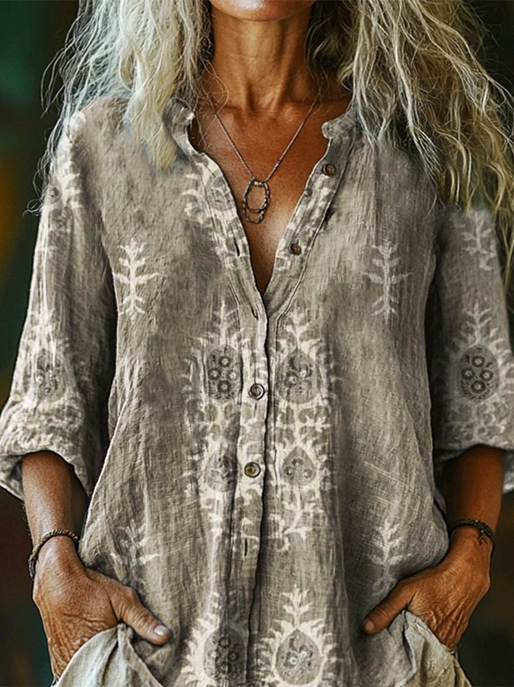 Women's Retro Ethnic Totem Art Print Casual Cotton Linen Shirt