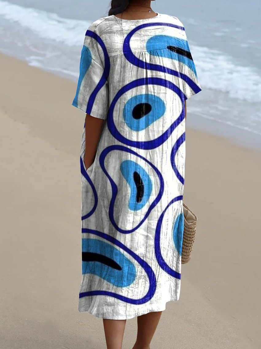 Women's Retro Minimalist Abstract Art Print Flowy Dress