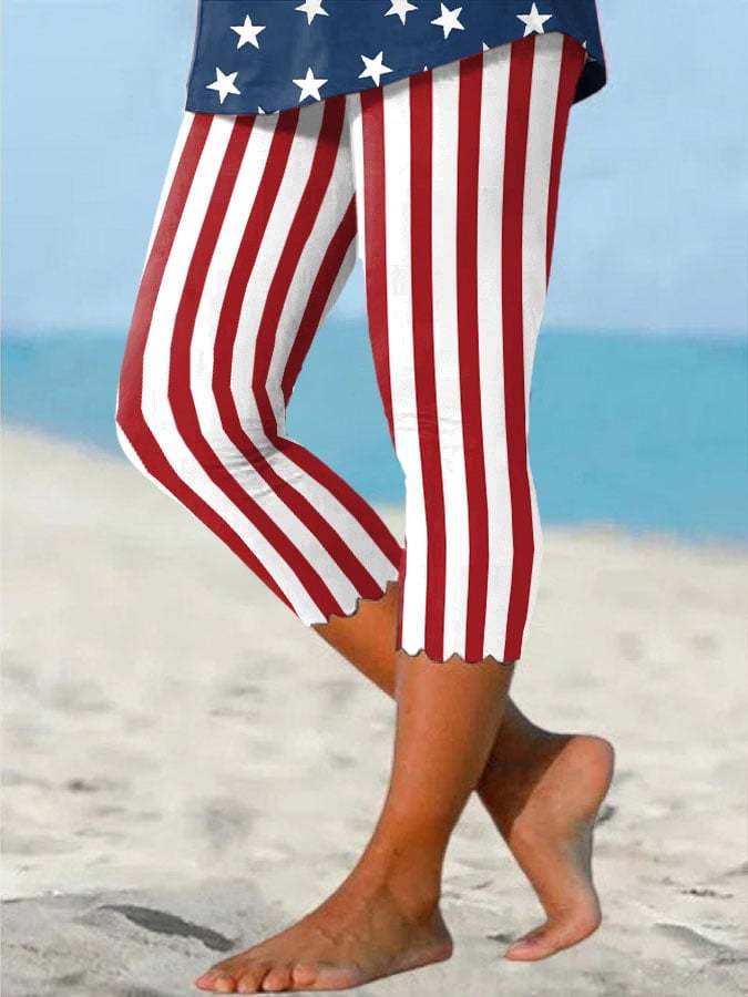 Women's Retro Red And White Striped Art Print Leggings