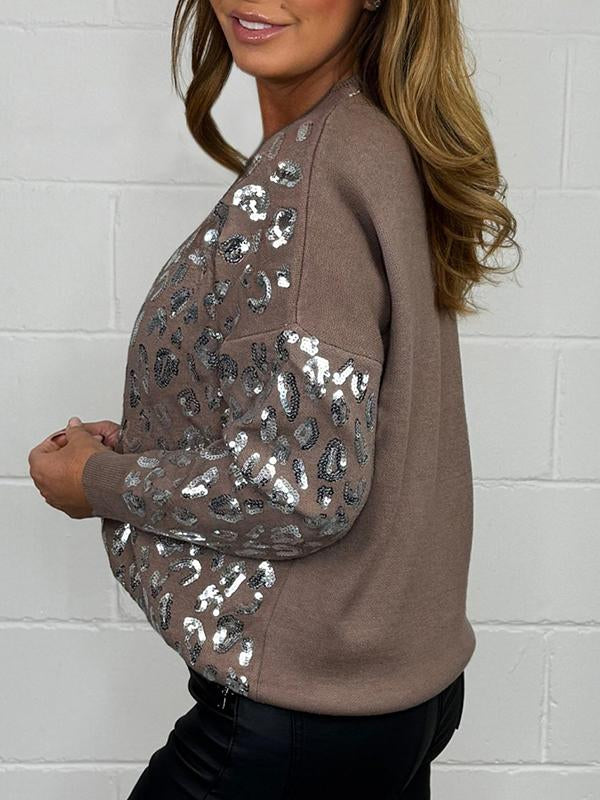 Women's Round Neck Sequined Knitted Top Fashion Trends