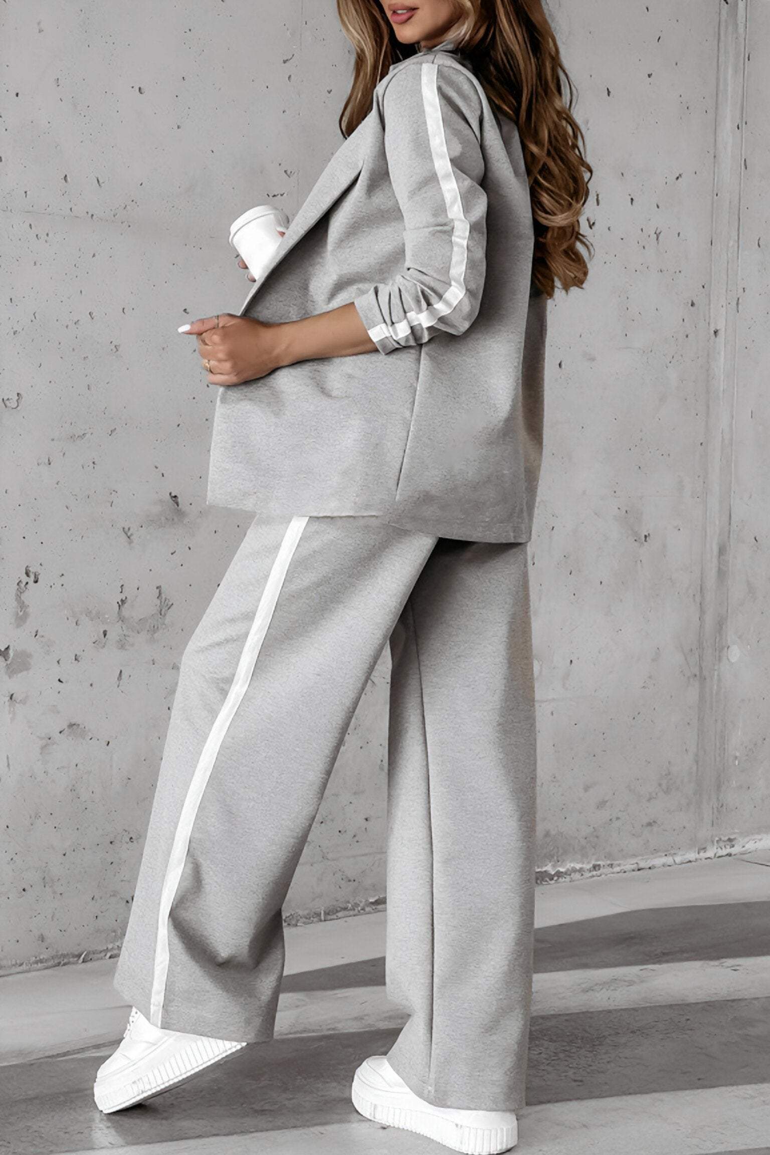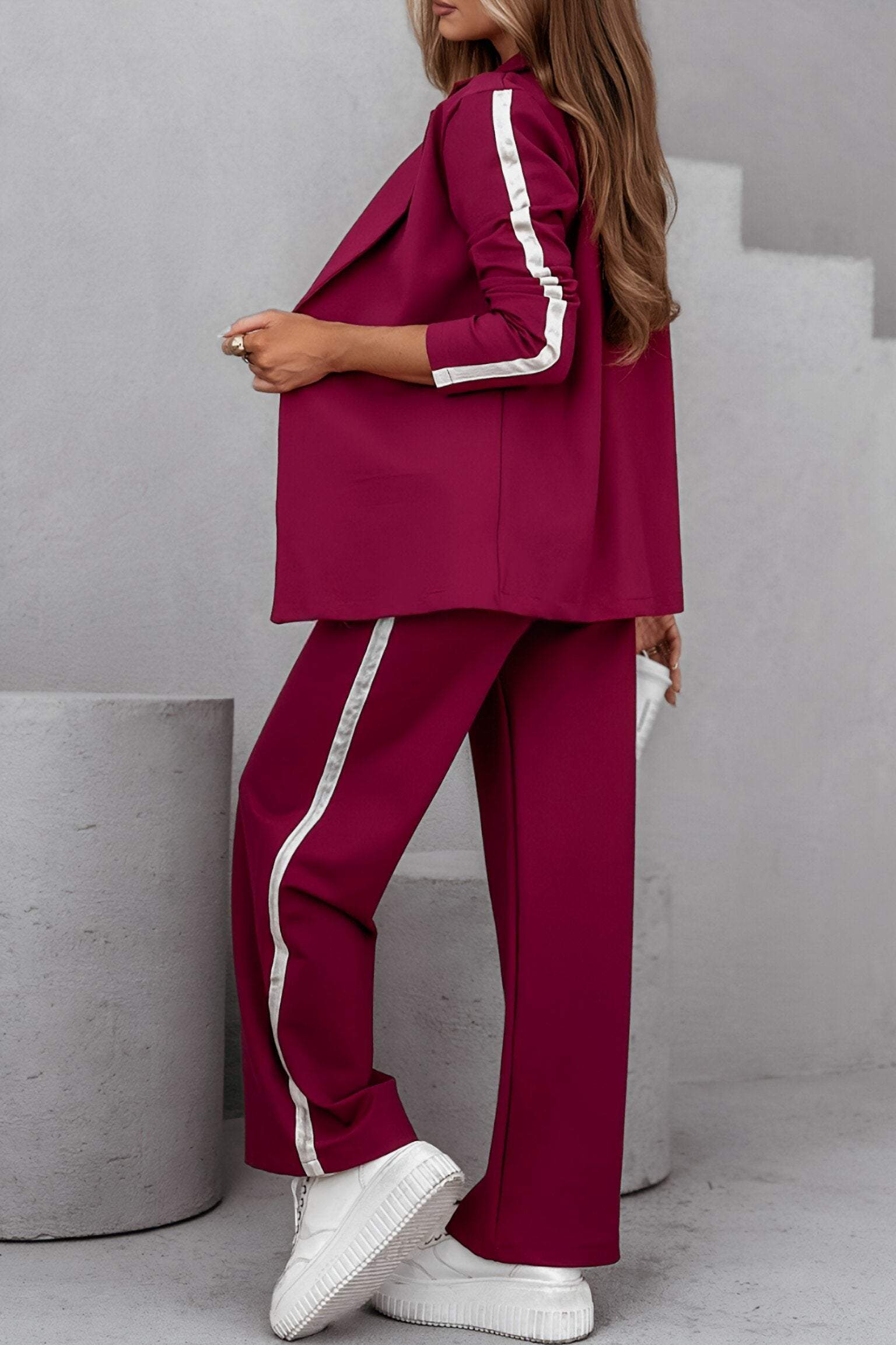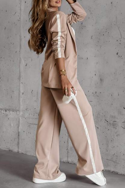 Women's Side Striped Lapel Long Sleeve Casual Suit