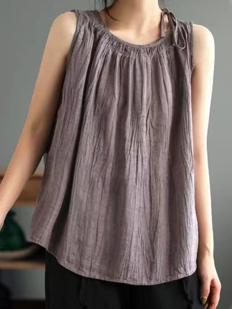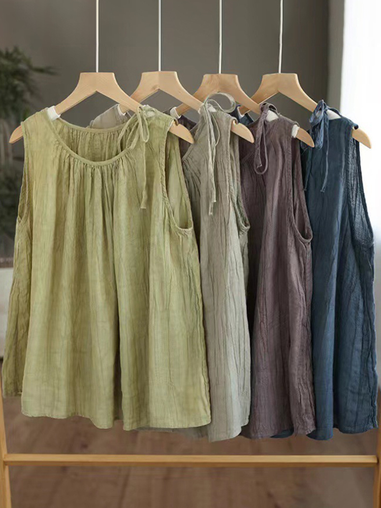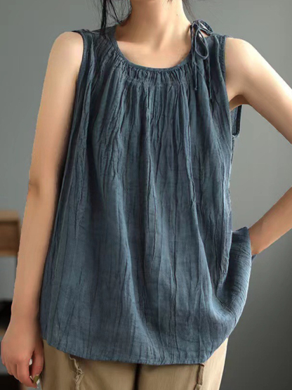 Women's Simple Solid Color Linen Blended Tank Top