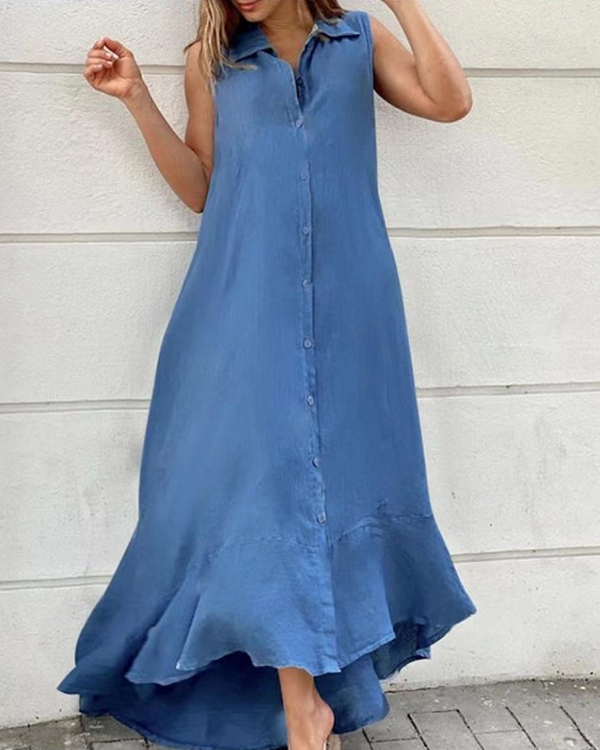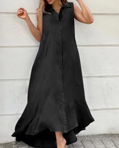 Women's Sleeveless V-neck Solid Casual Long Dress
