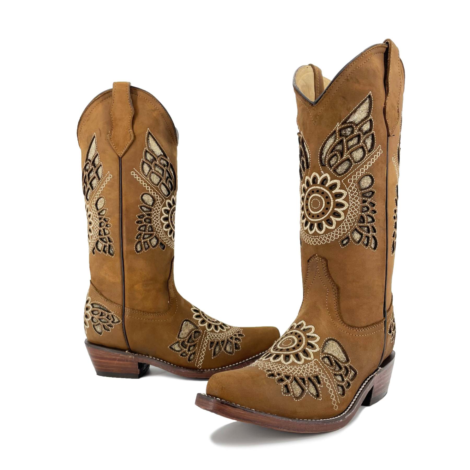 Women's Snip Toe Glitter Boots -Sand Tan