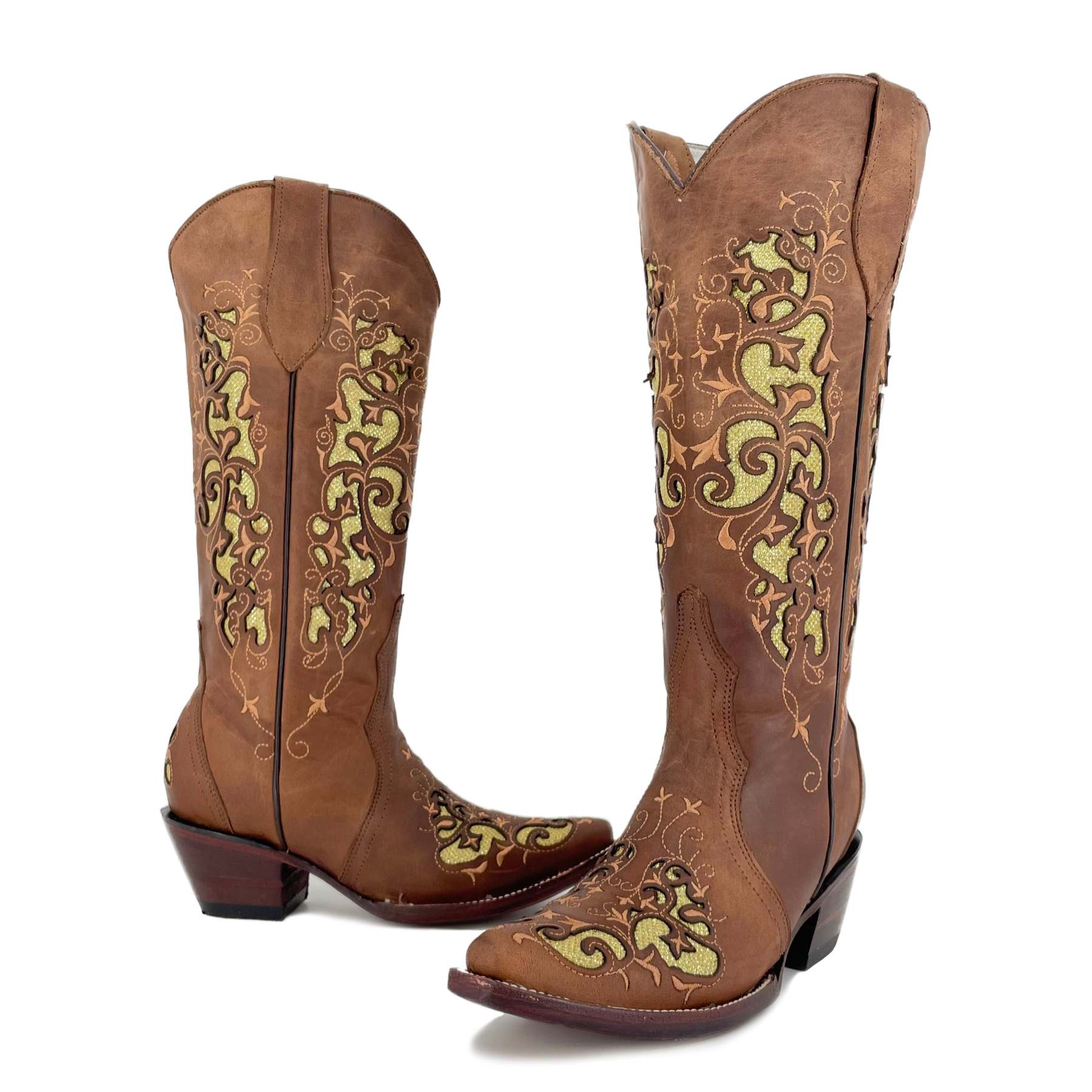 With a tobbaco leather, an intricate glitter inlay desig and snip toe, our Glitter Western Boots gives a western look. Easy to match with your favorite outfit.