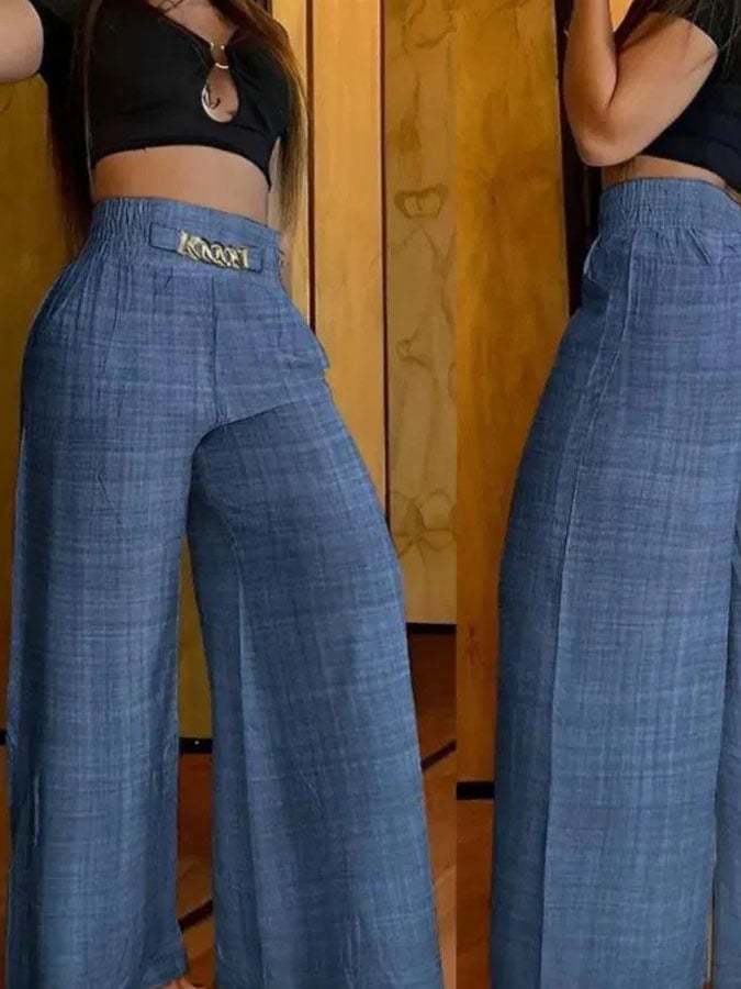 Women'S Solid Color Casual Wide-Leg Pants