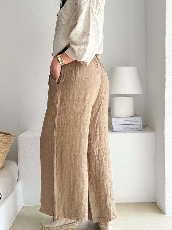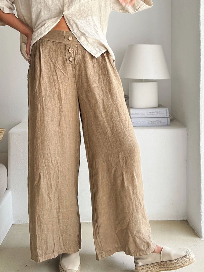 Women'S Solid Color Cotton And Linen Casual Wide-Leg Pants