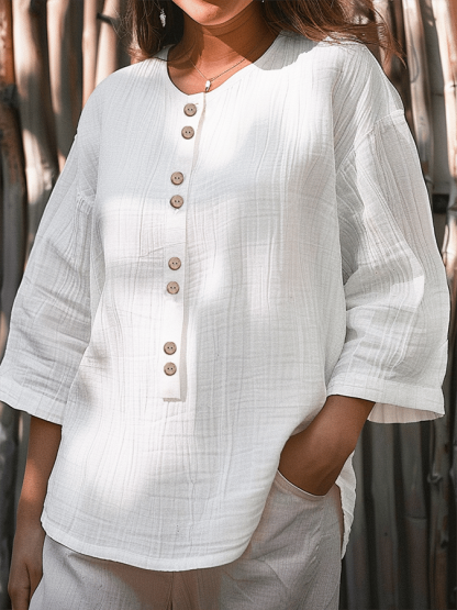 Women's Solid Color Simple Versatile Casual Cotton And Linen Shirt