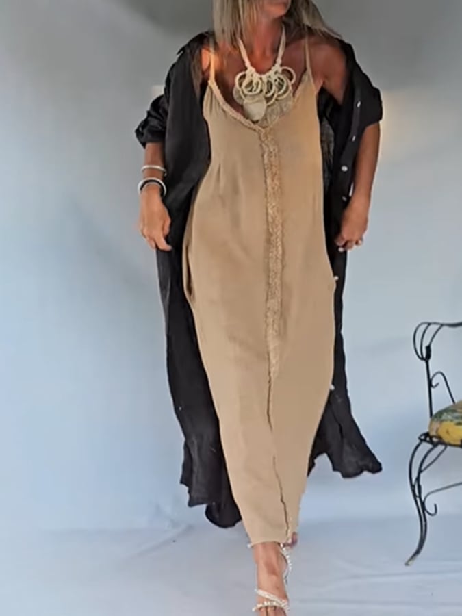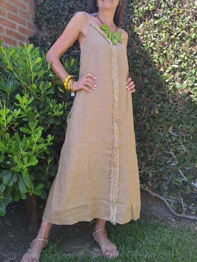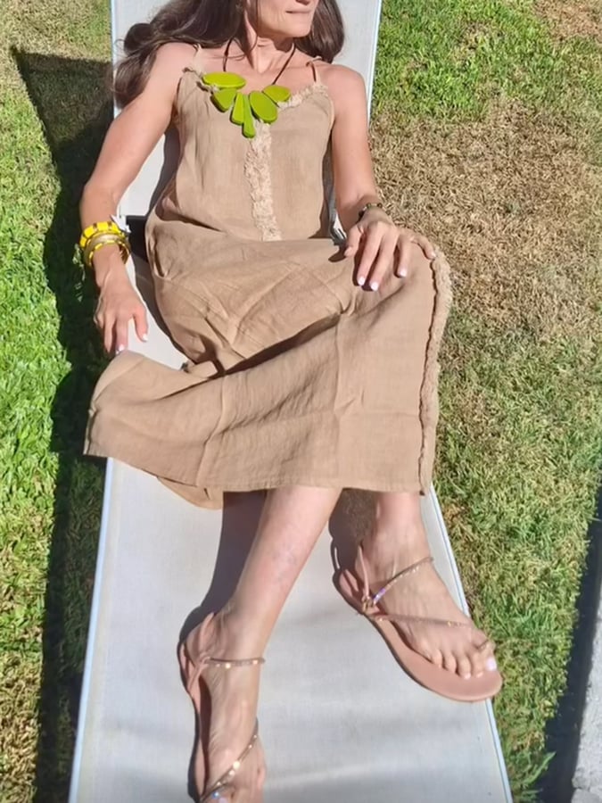 Women'S Special Suspender Cotton And Linen Dress