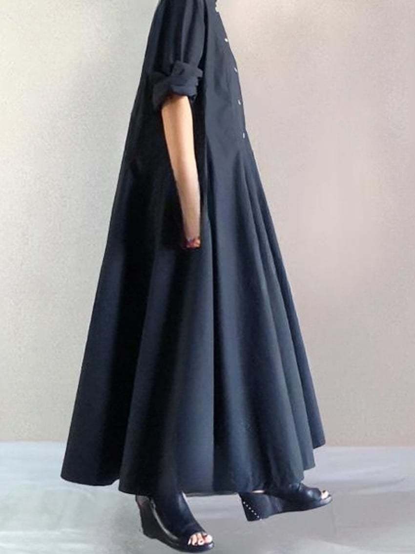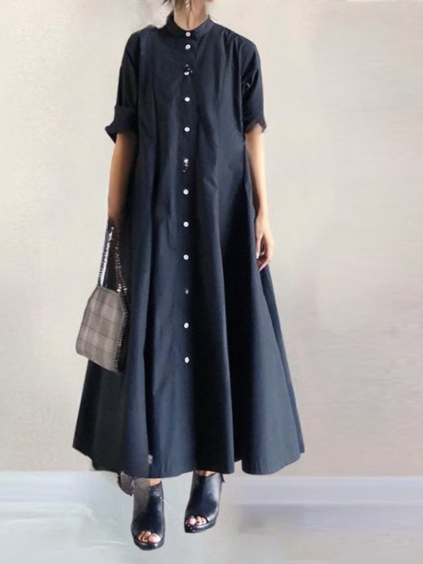 Women's Standing Collar Long Sleeve A Hem Shirt Loose Long Skinny Dresses
