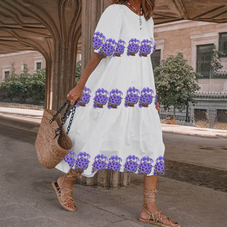 Women's Three-Dimensional Floral Print Lantern Sleeve Dress