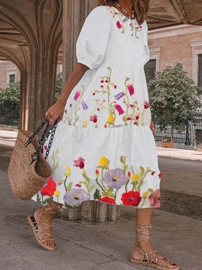 Women's Three-Dimensional Floral Print Lantern Sleeve Dress