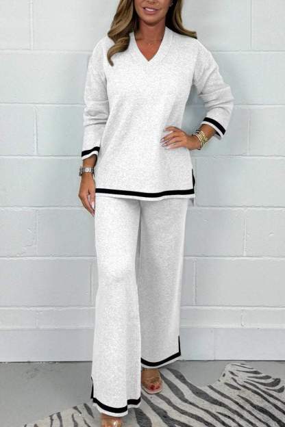 Women's V-Neck Soft Knit Border Edge Trouser Co-Ord
