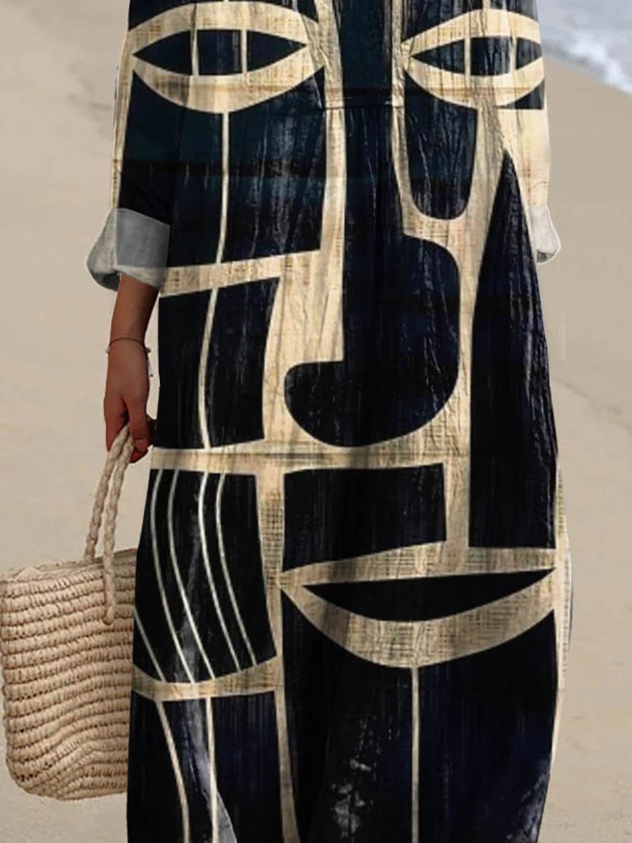 Women's Vintage Abstract Figure Painting Art Print Casual Dress