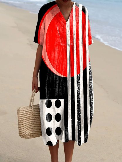 Women's Vintage Abstract Geometric Line Pattern Art Print Flowy Dress