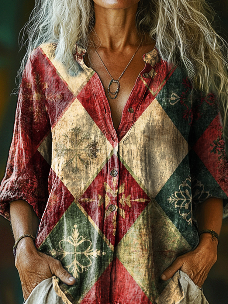 Women's Vintage Bohemian Floral Art Print Casual Cotton Linen Shirt