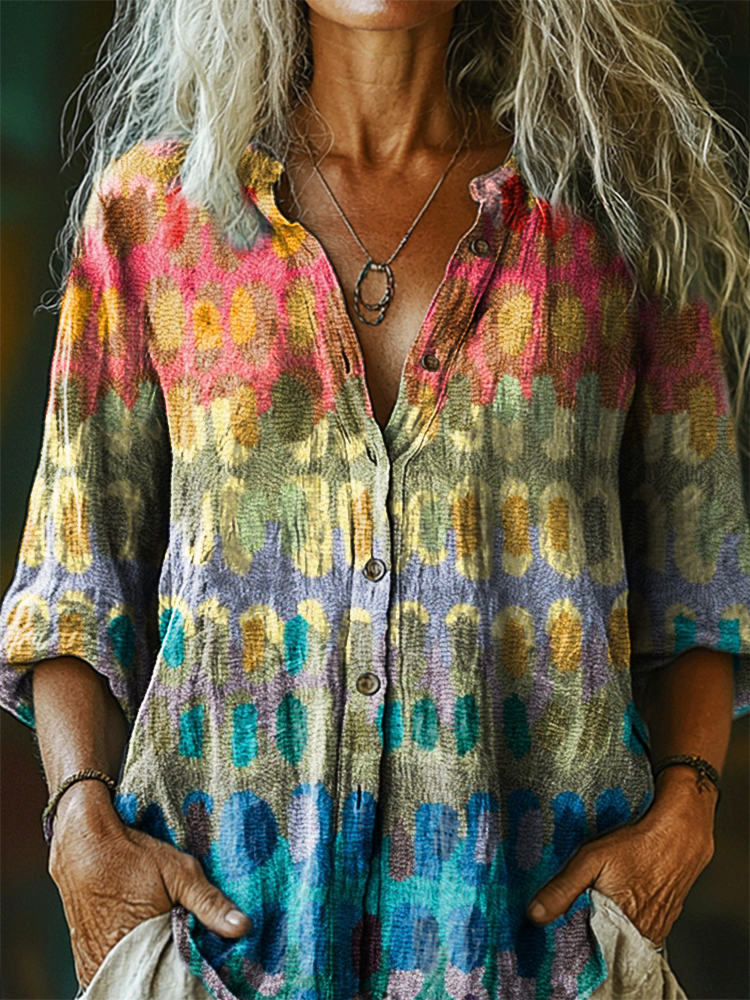 Women's Vintage Bohemian Pattern Art Print Casual Cotton Linen Shirt