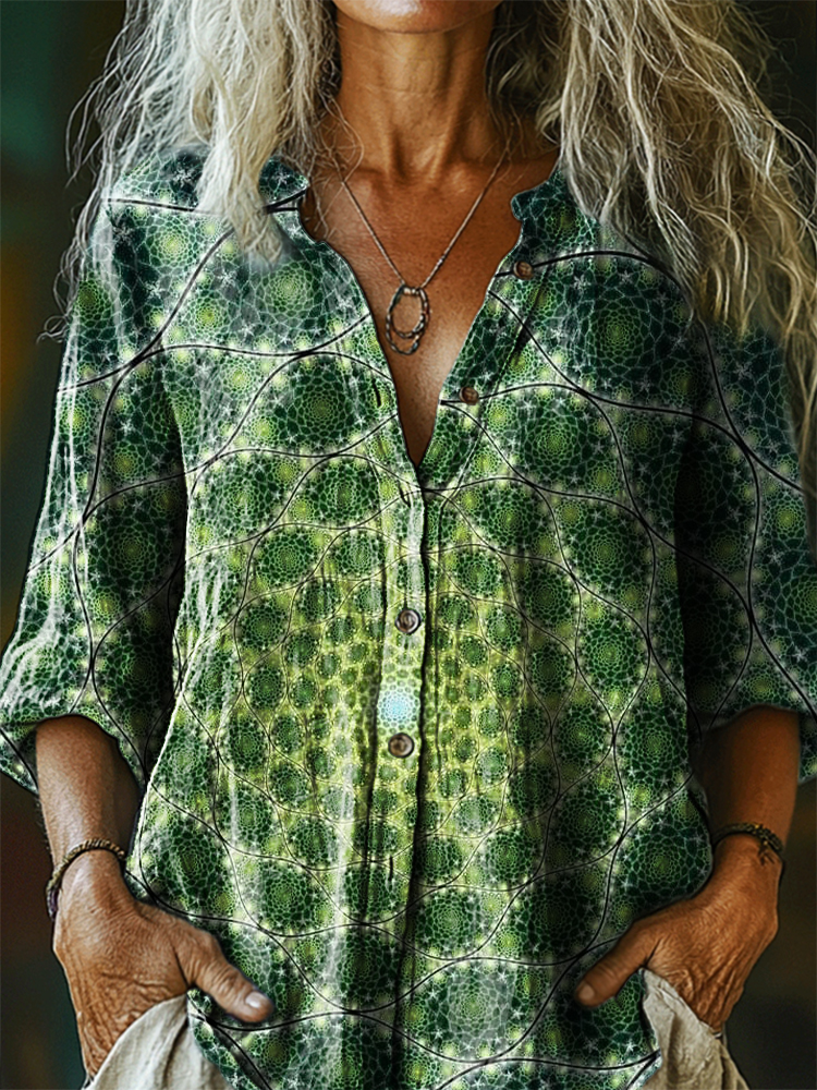 Women's Vintage Bohemian Patterns Art Print Casual Cotton Linen Shirt