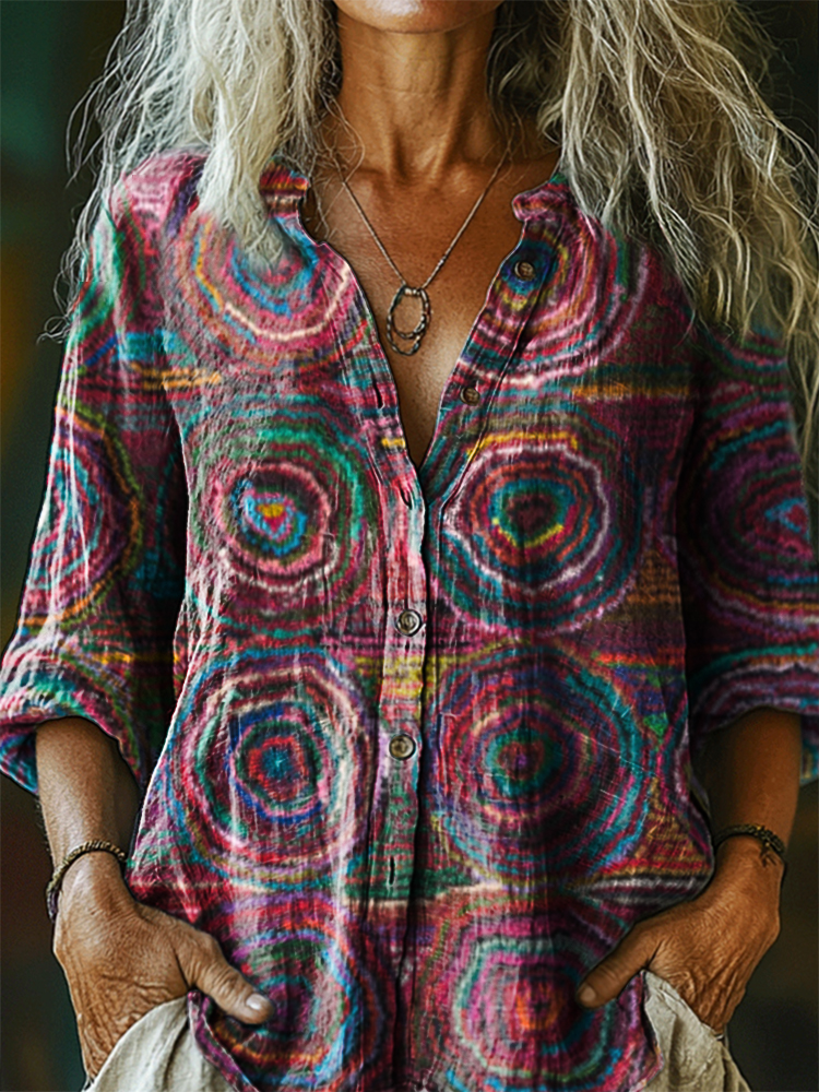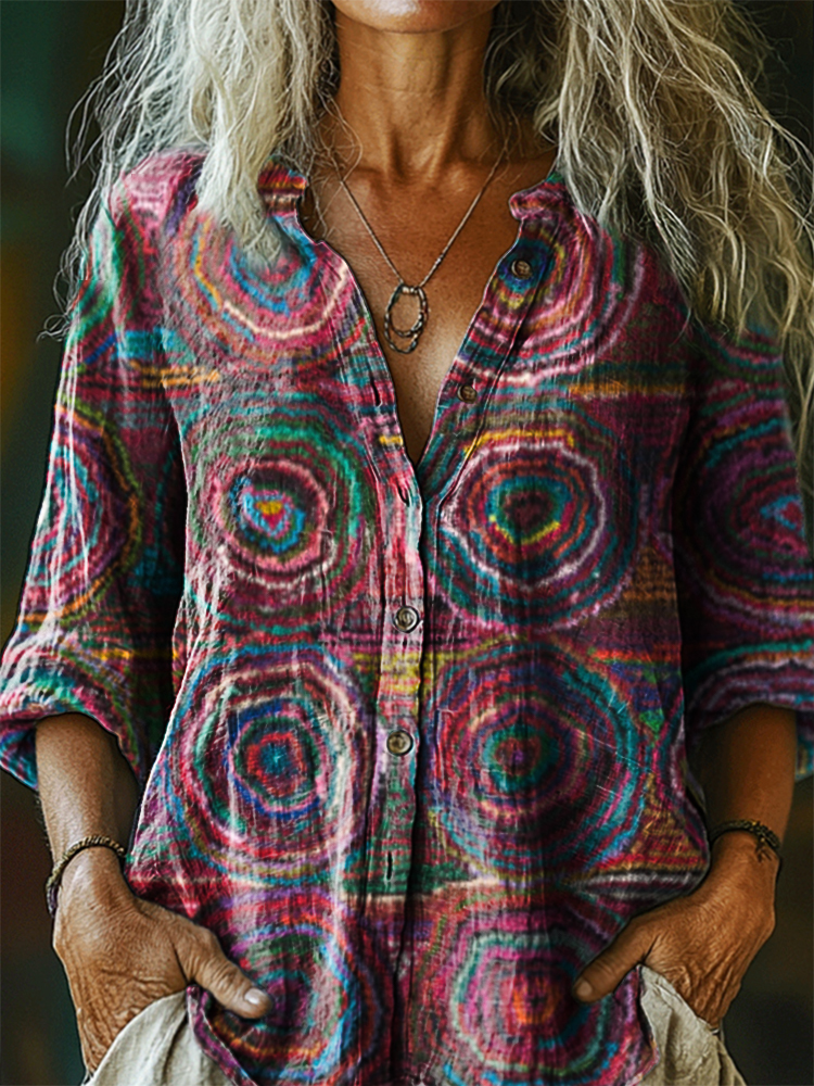Women's Vintage Bohemian Patterns Art Print Casual Cotton Linen Shirt
