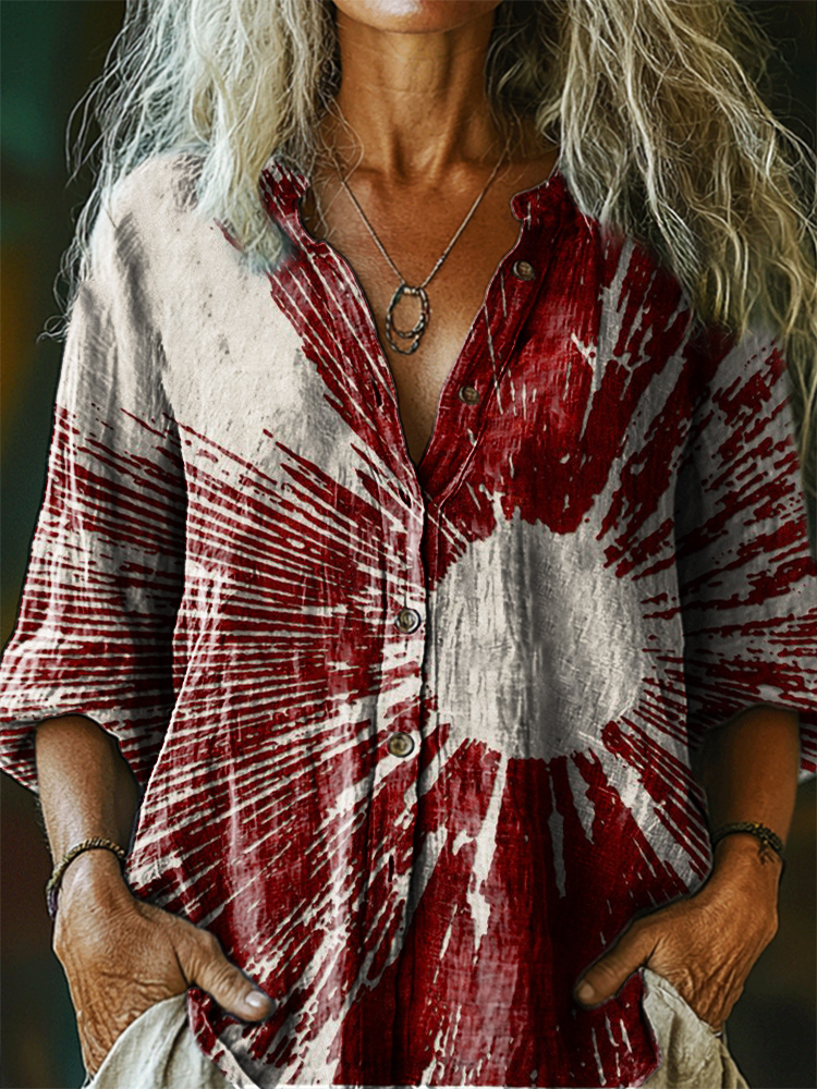 Women's Vintage Bohemian Patterns Art Print Casual Cotton Linen Shirt