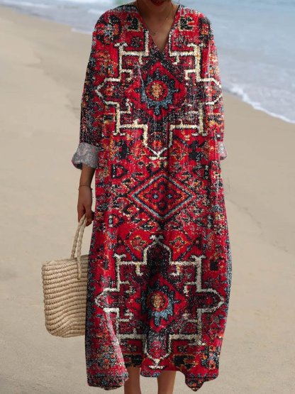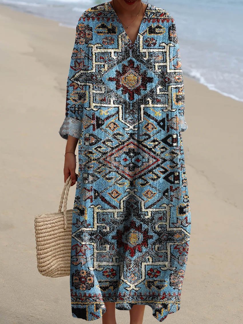 Women's Vintage Ethnic Floral Pattern Art Print Casual Dress