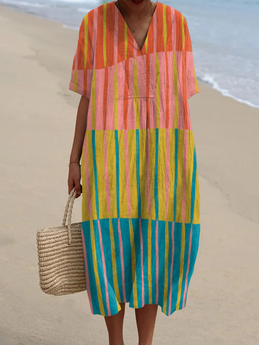 Women's Retro Abstract Geometric Print Flowy Dress