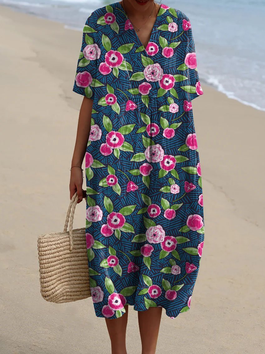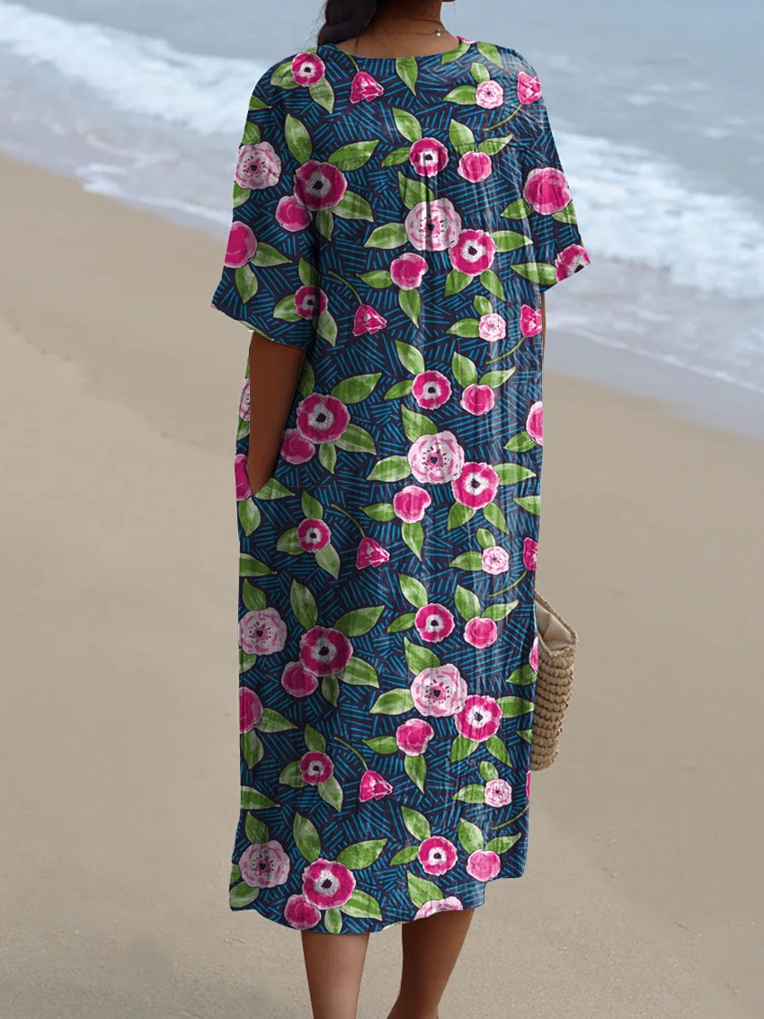 Women's Vintage Floral Art Print Casual Flowy Dress