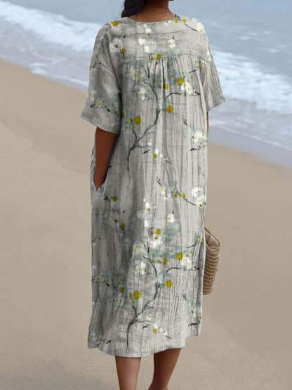 Women's Vintage Floral Art Print Casual Flowy Dress