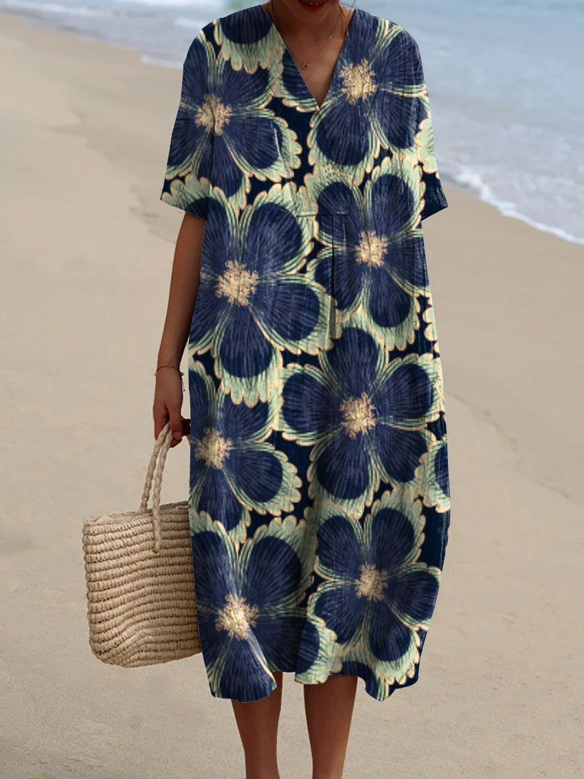 Women's Vintage Floral Art Print Casual Flowy Dress