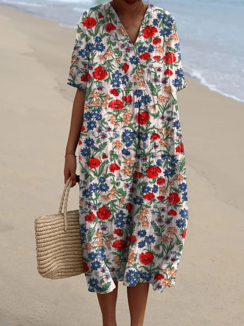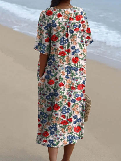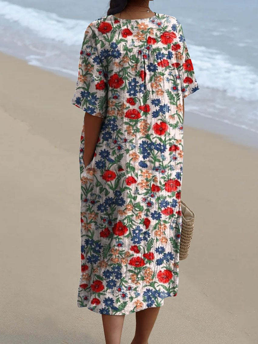 Women's Vintage Floral Art Print Casual Flowy Dress