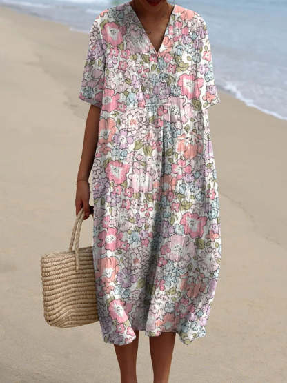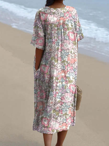 Women's Vintage Floral Art Print Casual Flowy Dress