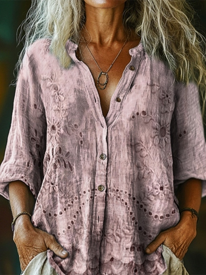 Women's Vintage Floral Texture Art Print Casual Cotton Linen Shirt