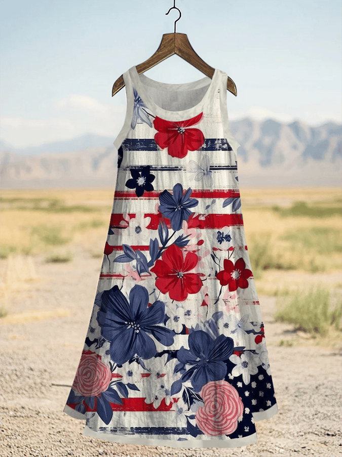 Women's Vintage Independence Day Floral Print Linen Blend Sundress
