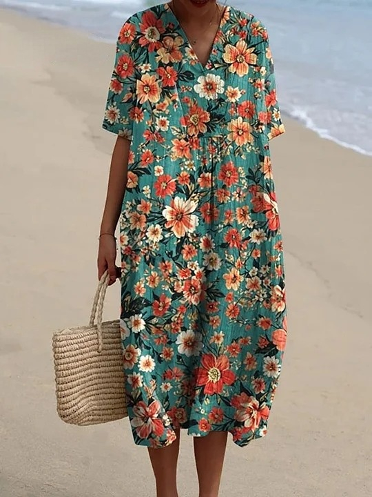 Women's Vintage Lovely Floral Art Print Flowy Dress