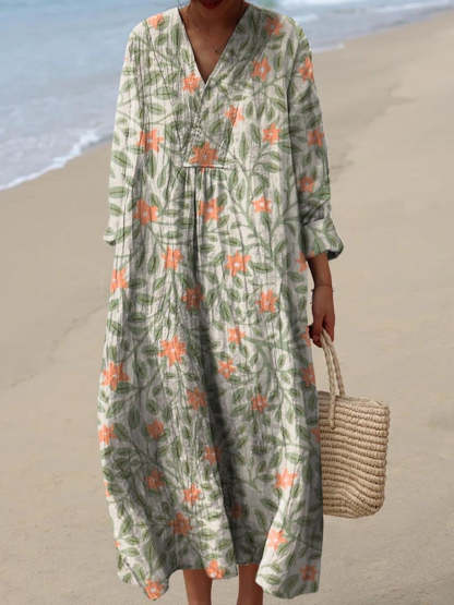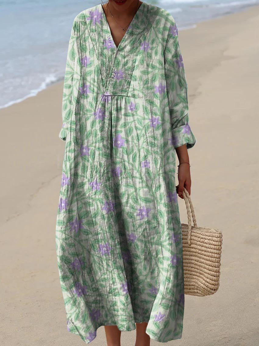 Women's Vintage Lovely Floral Art Print Flowy Dress
