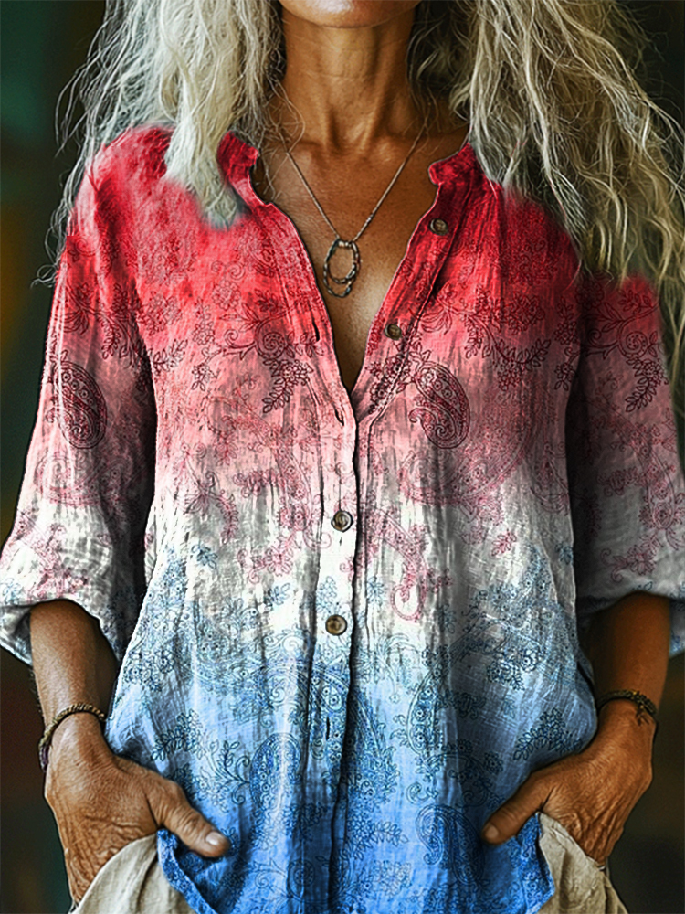 Women's Vintage Paisley Floral Art Print Casual Cotton Linen Shirt