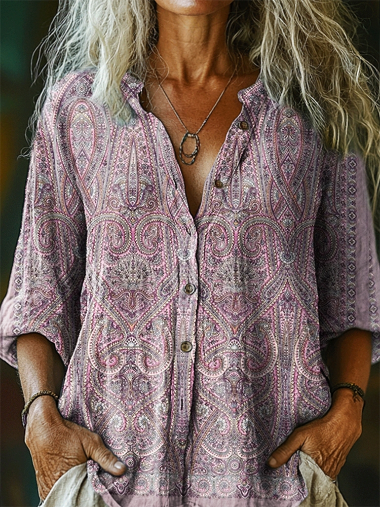 Women's Vintage Tattoo Pattern Art Print Casual Cotton Linen Shirt