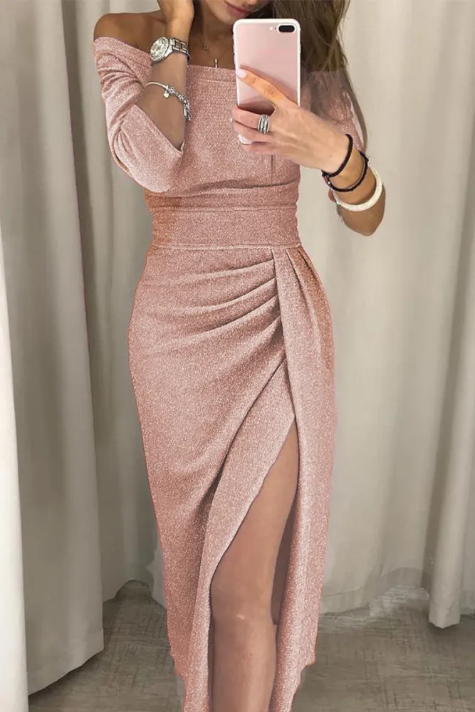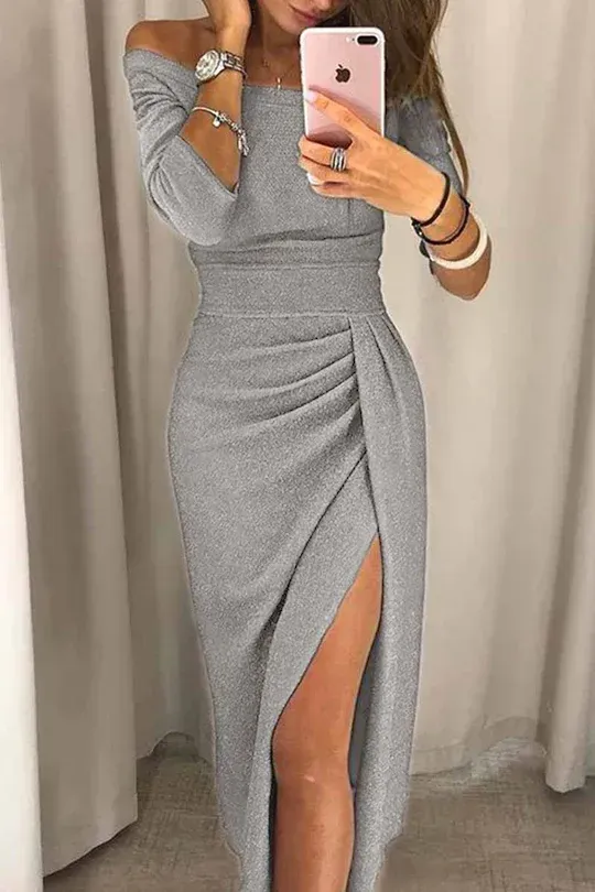 Wrap Hip Slit Collar Maxi Dresses(5 Colors)