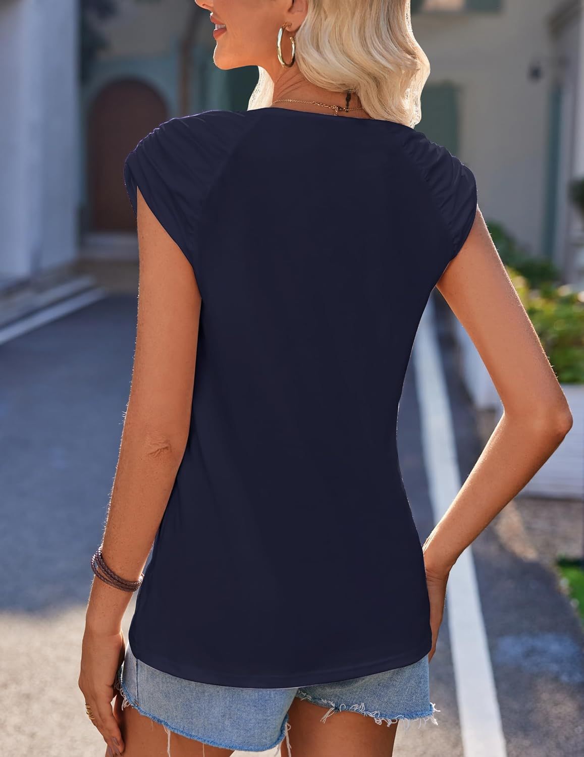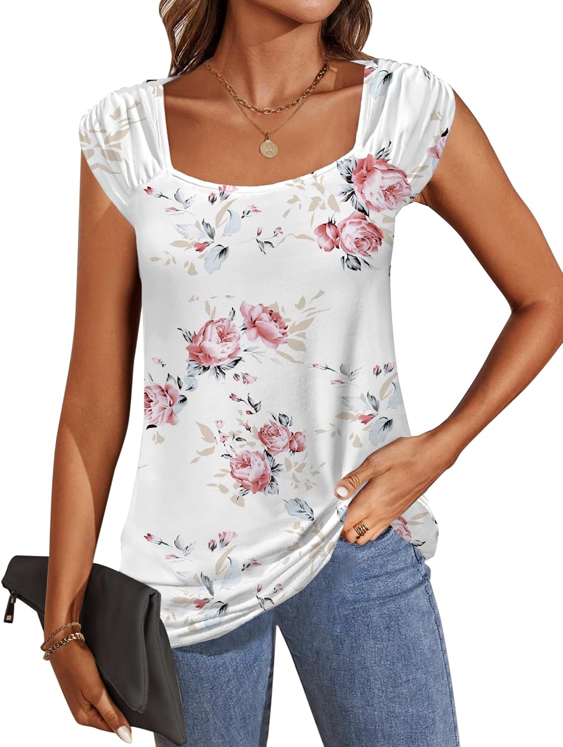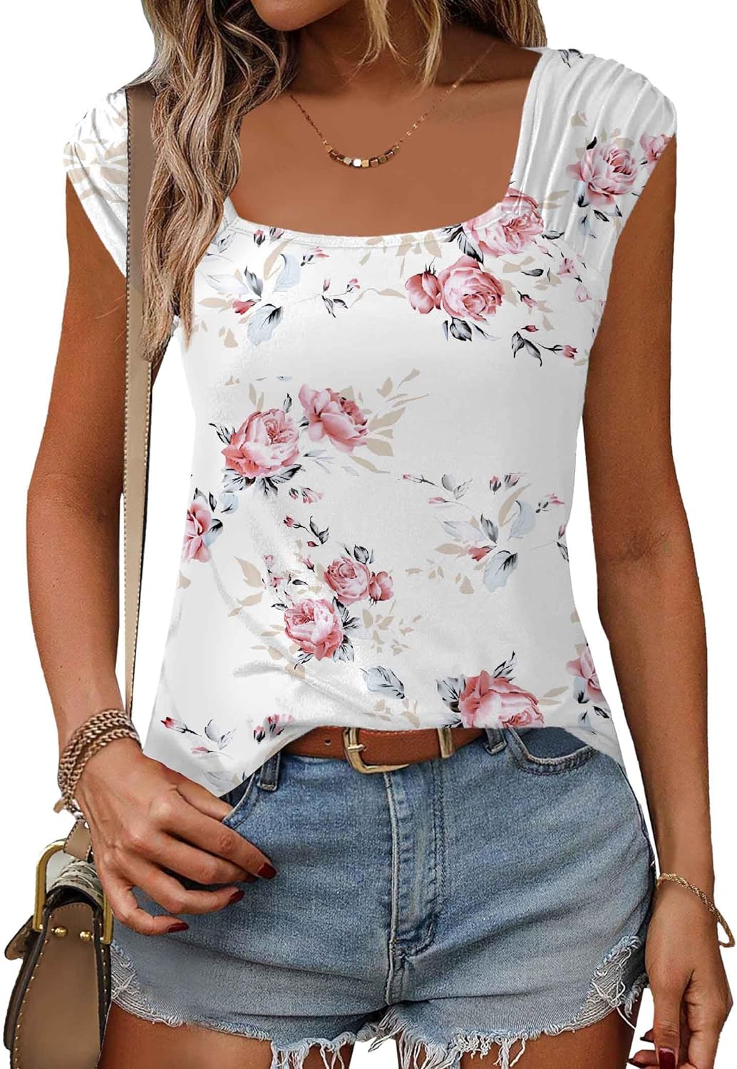Unique Design: square neck tank top for women, suitable for any neck shape, solid flowy loose fit basic shirts for women, cap sleeve give your confidence to show your charming arm line, you will flattering with the fashion pleated shoulder design.