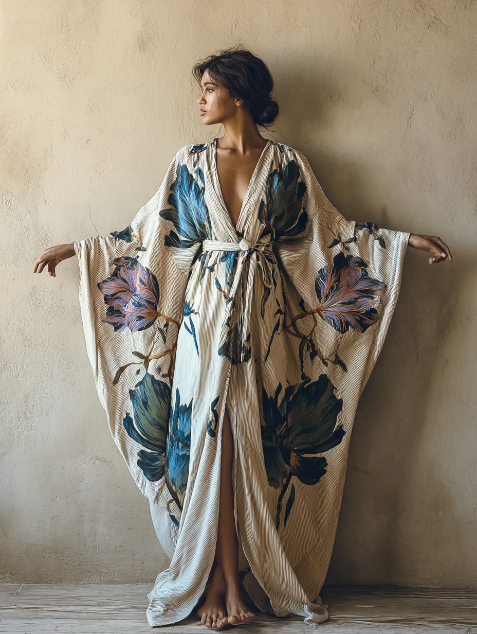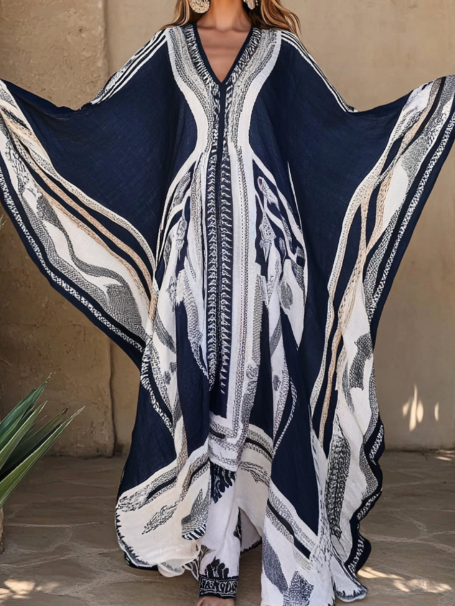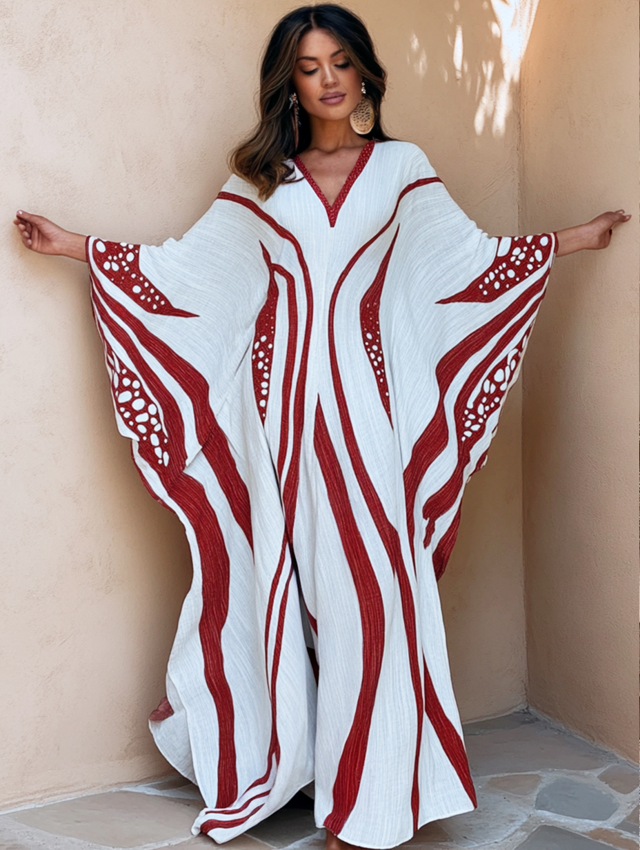 Caftan Striped Printed Beach V-Neck Kaftan Dress