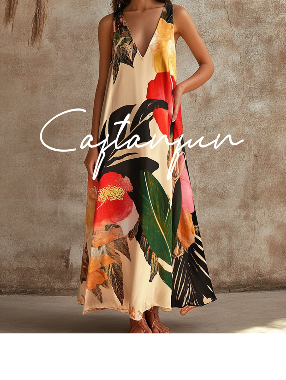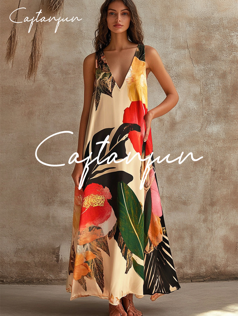 Tropical Floral V-neck Sleeveless Hoilday Dress