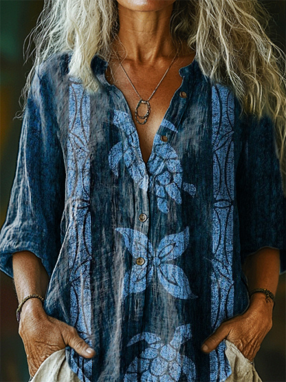 Turtle Pattern Art Print Cotton Linen Casual Women's Shirt