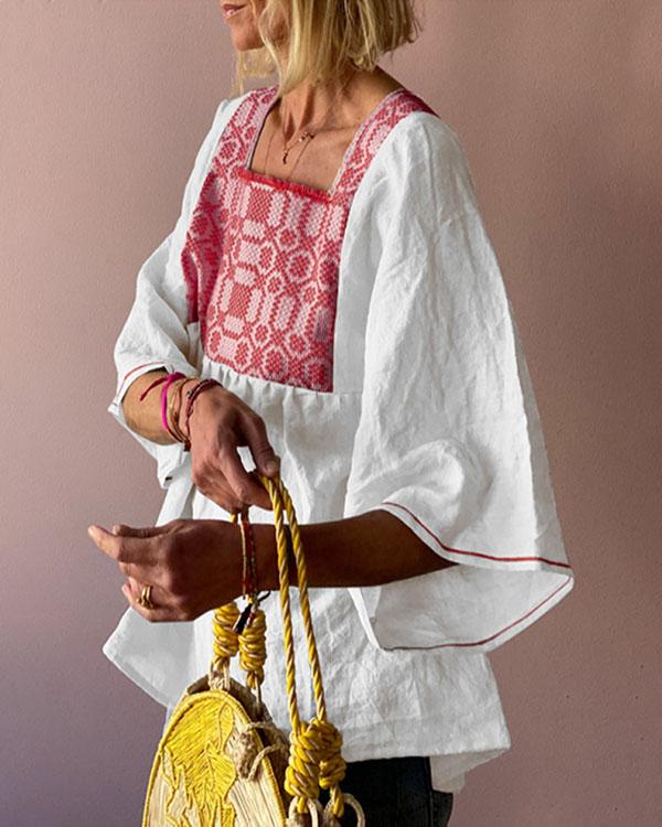 Women's Cotton And Linen Printed Loose Short-sleeved T-shirt Top