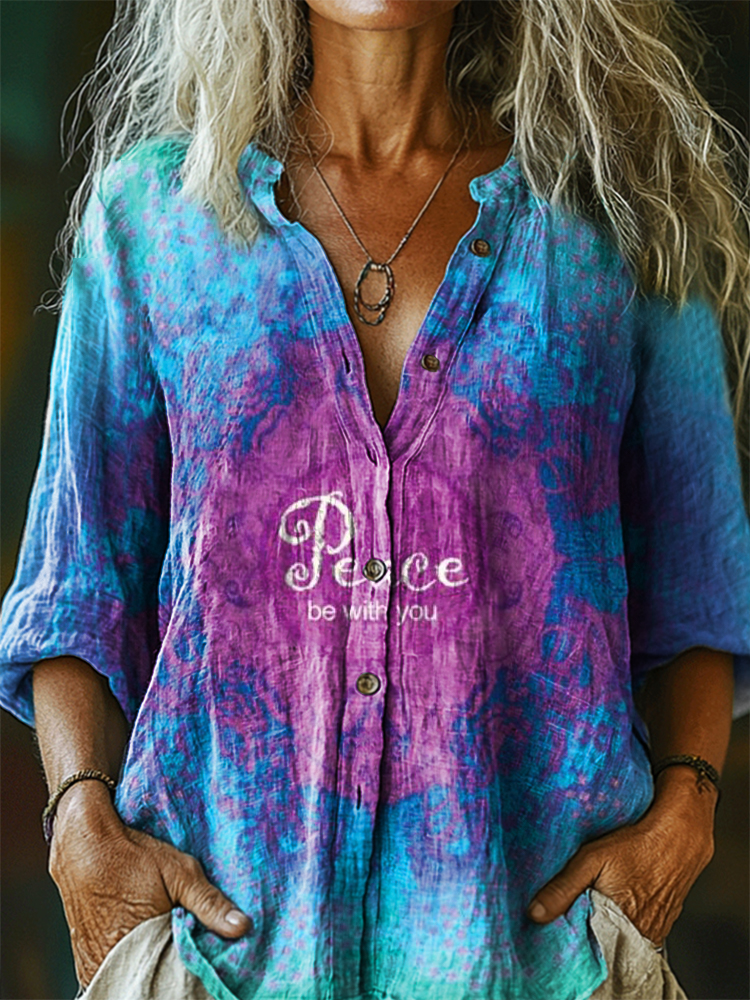 Women's Hippie Peace Art Print Casual Cotton And Linen Shirt