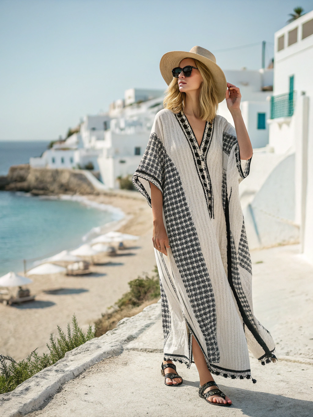 Contton & Linen Long Sleeve Kaftan Maxi Dress