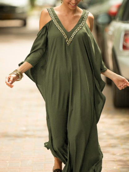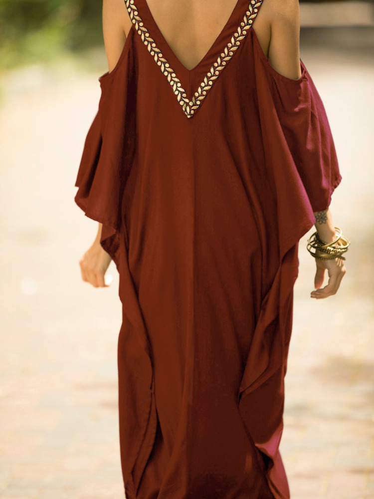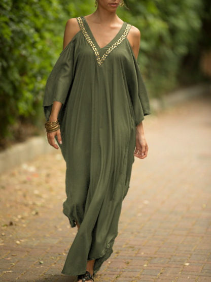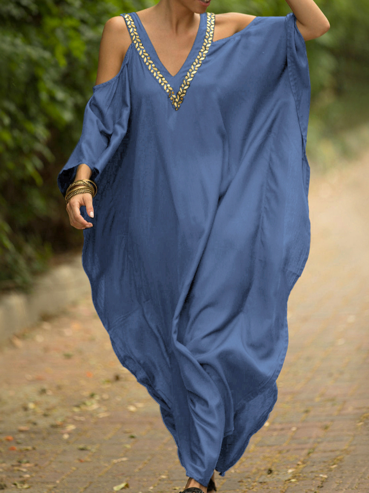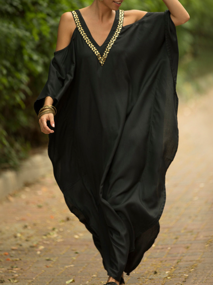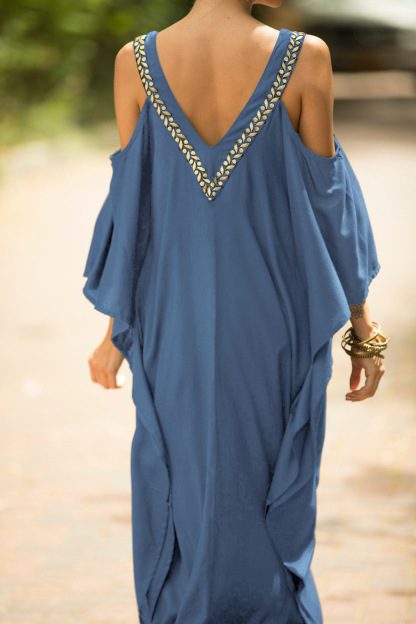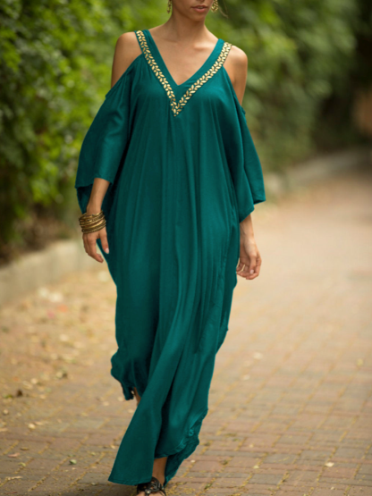 Kaftan Halter Embroidered Cotton Holiday Gown Maxigown