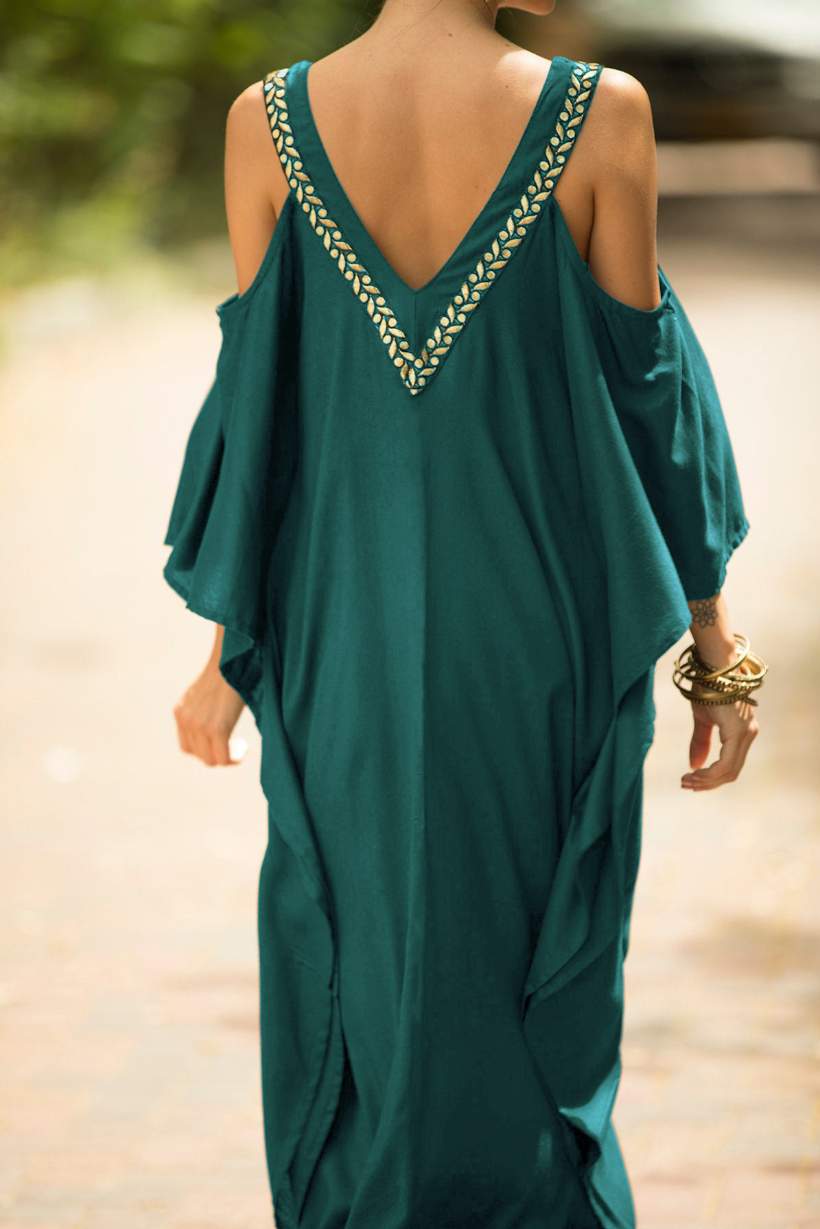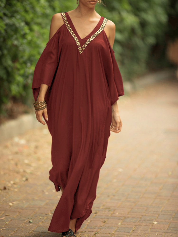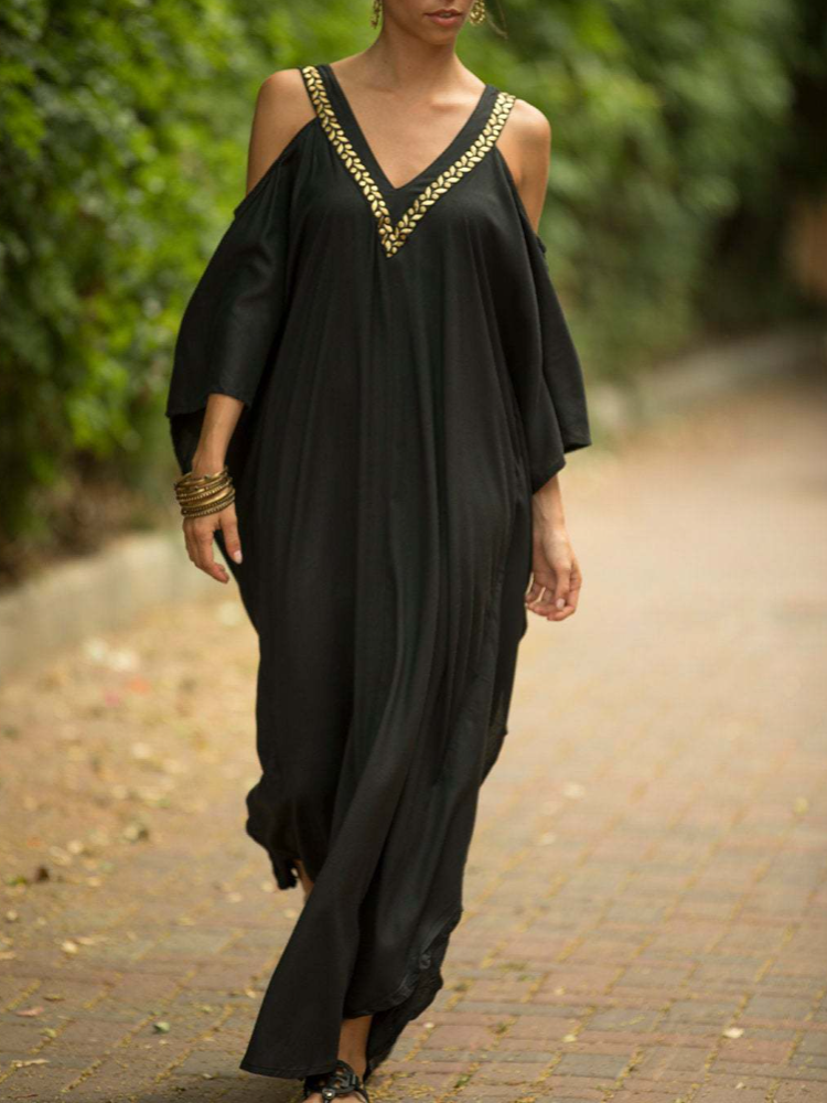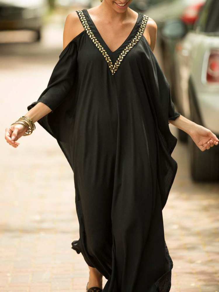 Kaftan Halter Embroidered Cotton Holiday Gown Maxigown