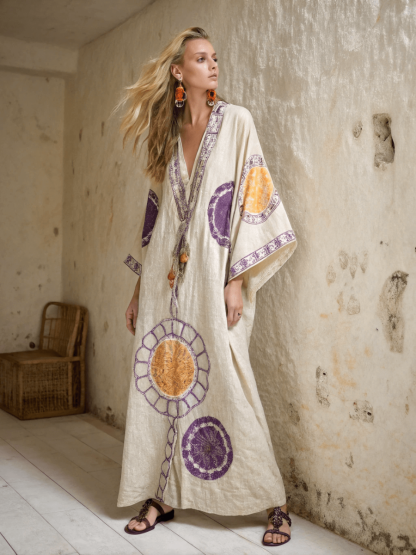 Linen Printed Kaftan Maxi Dress