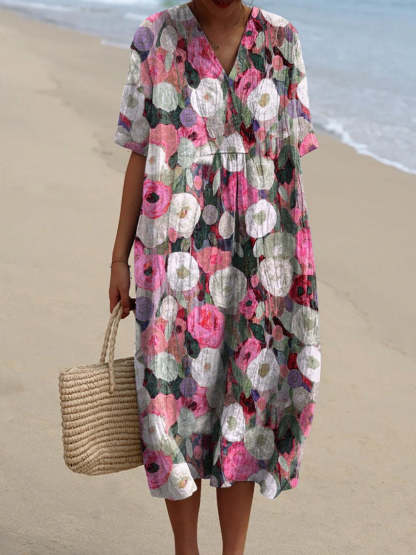 Lovely Poppy Field Printed Women's Flowy Dress
