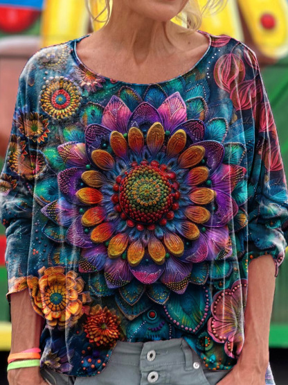 Vintage Mandala Graphic Art Print Casual Long Sleeve T-Shirt